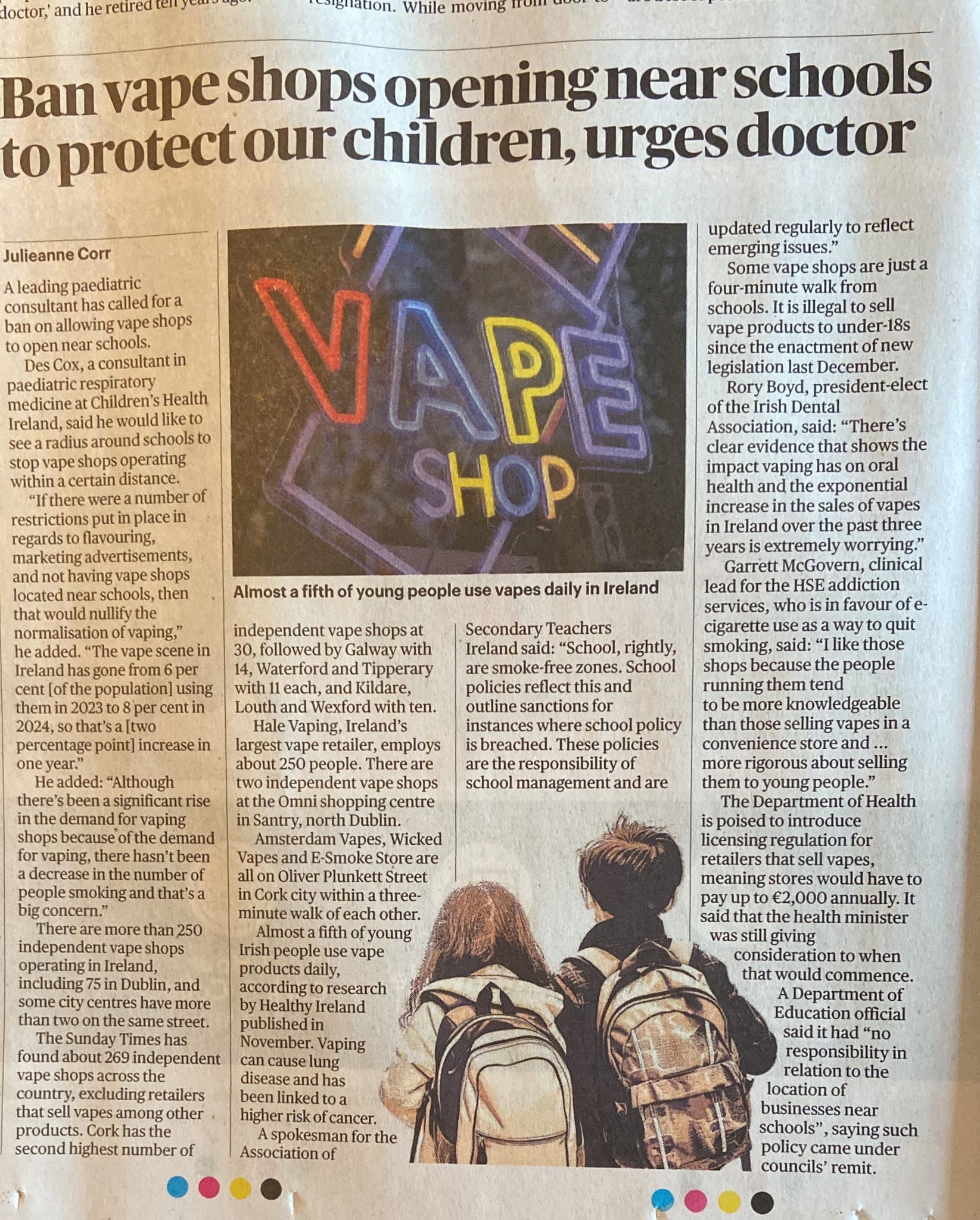 Sunday Times – Ban Vape Shops Opening Near Schools